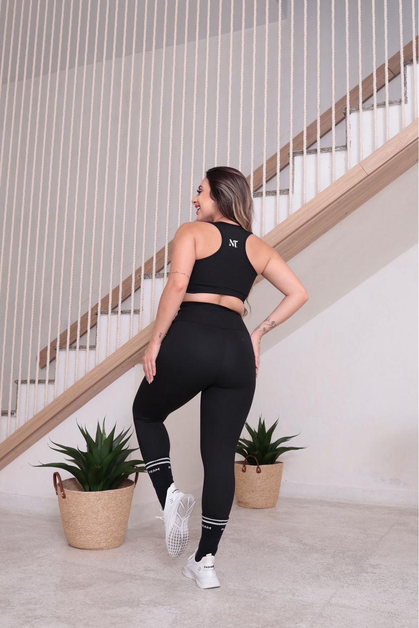 “Ideal para quem busca um visual ‘all black’ nada básico. Ele transita perfeitamente da musculação pesada para um aeróbico intenso, garantindo que você se sinta confiante e segura em cada repetição.”